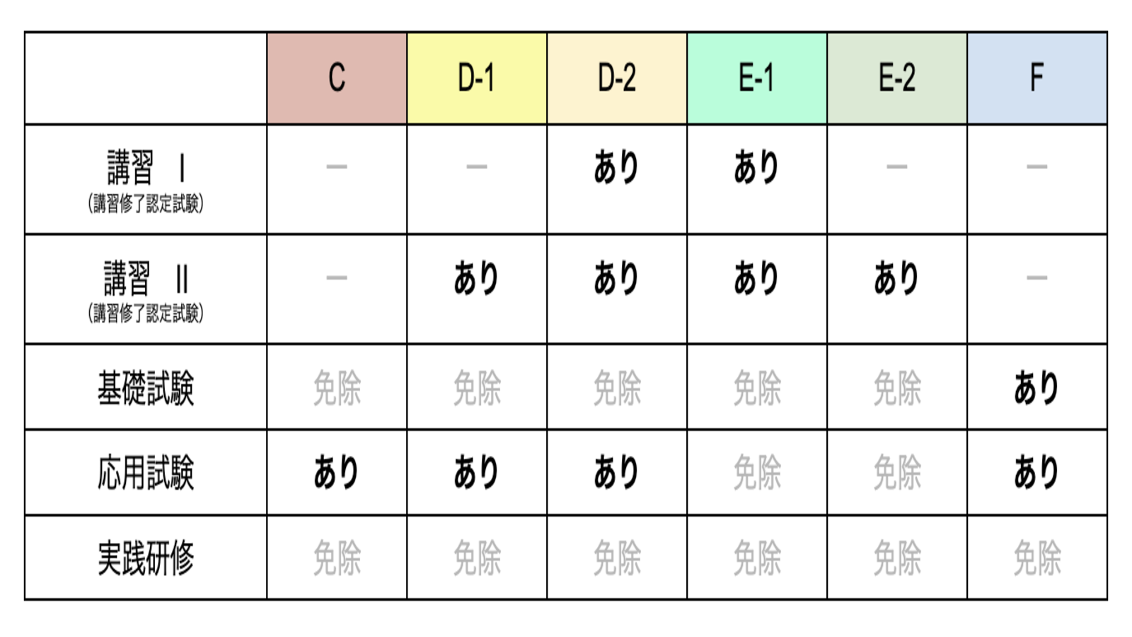 最後に、検索結果を早見表(ルートと講習・試験・研修との対応)にまとめました。